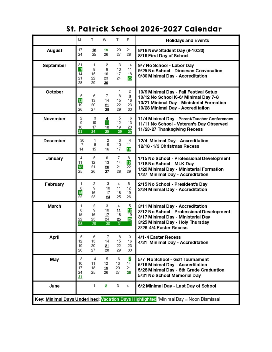 Yes, St. Patrick School offers extended care services for all registered students. Our before-school care runs from 7am to 8am, and after-school care begins at 3pm and concludes at 6pm.